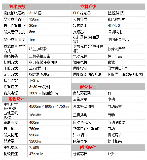 生產螺旋型紙管從涂膠、卷繞、到按要求多刀切割一次完成。